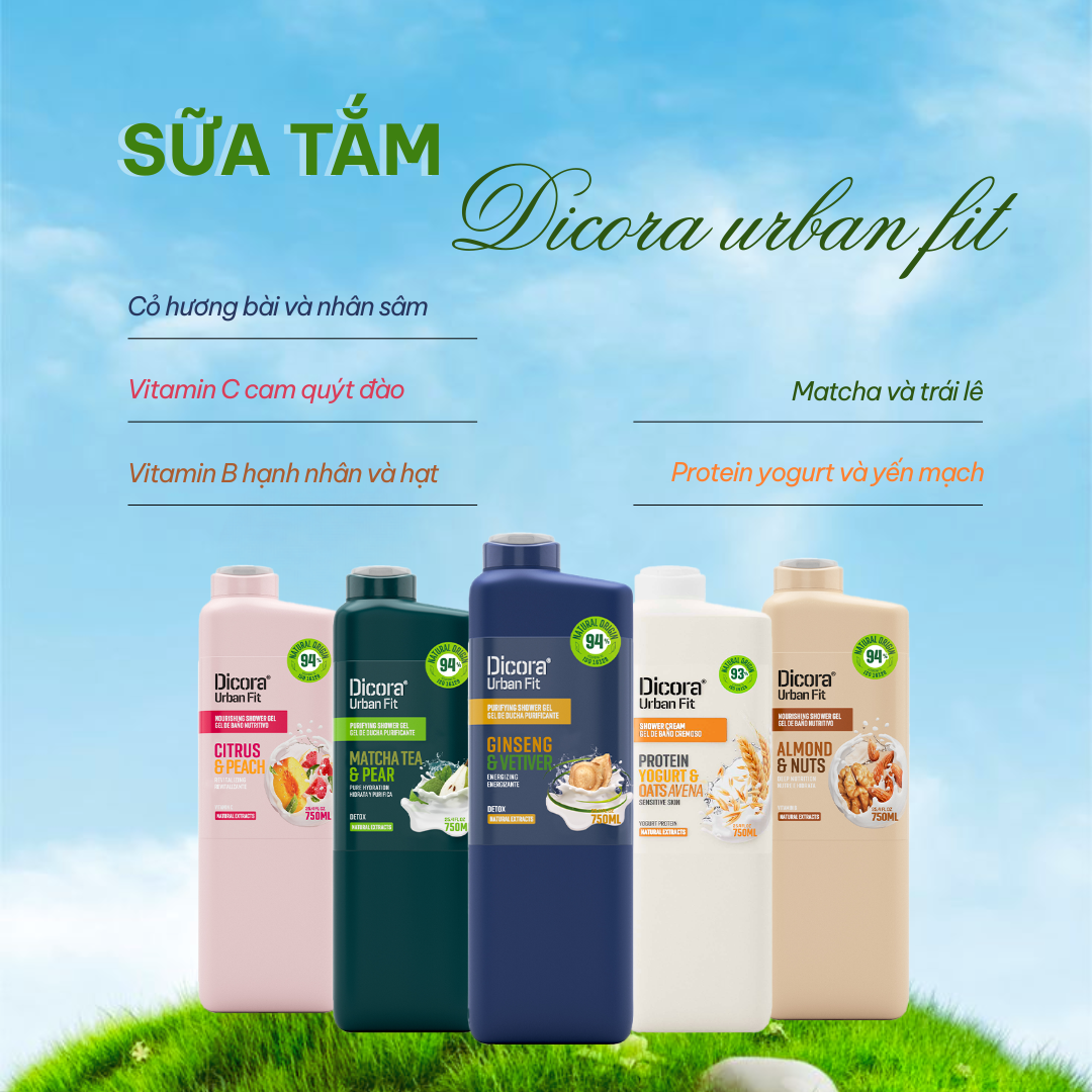 Sữa tắm Dicora Urban Fit được thiết kế dành riêng cho nhịp sống thành thị: làm sạch nhẹ nhàng, pH cân bằng, không paraben, không silicon, giúp da sạch thoáng nhưng không khô căng. Khi da không bị khô, mùi hương sẽ bám tốt hơn và lan tỏa đều hơn.